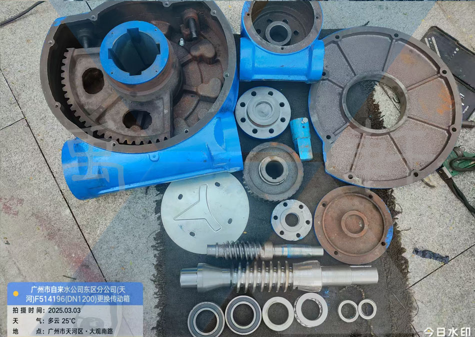 - 廣州自來水東區(qū)分公司DN1200法蘭蝶閥檢修更換管網(wǎng)式蝸輪箱—上海禹軒助力供水安全