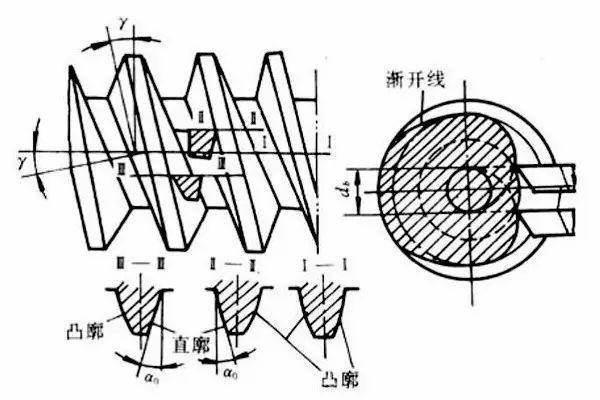 蝸桿齒面為漸開螺旋面,端面齒廓為漸開線。