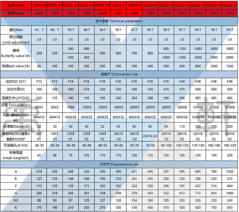 QDX3電動(dòng)蝶閥/球閥蝸輪驅(qū)動(dòng)裝置,QDX3蝸輪箱,配電動(dòng)執(zhí)行器蝸輪頭,電動(dòng)閥門(mén)減速機(jī)作用,QDX3部分回轉(zhuǎn)型電裝連接蝸輪箱,該CD型電動(dòng)單級(jí)蝸輪箱,一級(jí)電動(dòng)渦輪頭,蝶閥傳動(dòng)電動(dòng)減速機(jī)作用。系列是一款90°部分回轉(zhuǎn)驅(qū)動(dòng)裝置,適用于球閥、蝶閥、旋塞閥等類型閥門(mén)。該系列是單級(jí)蝸輪箱配上電裝組合成為二級(jí)智能自動(dòng)化傳動(dòng),具有開(kāi)關(guān)時(shí)間短,提高了工作效率。